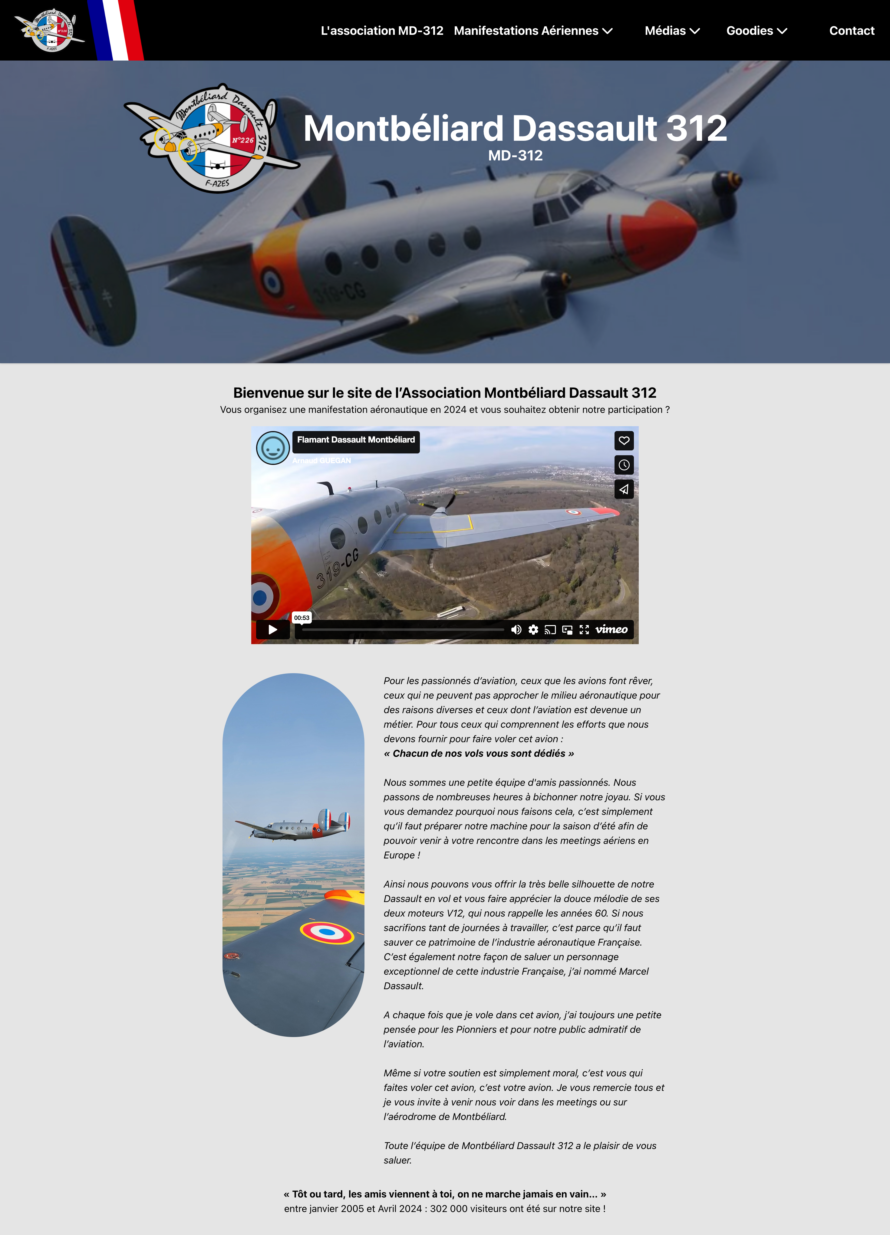 L'association “Montbéliard Dassault 312” a été créée le 4 juillet 2004 sur l’aérodrome de Courcelles les Montbéliard. Son but est de maintenir le Flamant MD 312 N° 226 F-AZES en état de vol et faire vivre à notre niveau, un petit bout de l’histoire de l’aviation