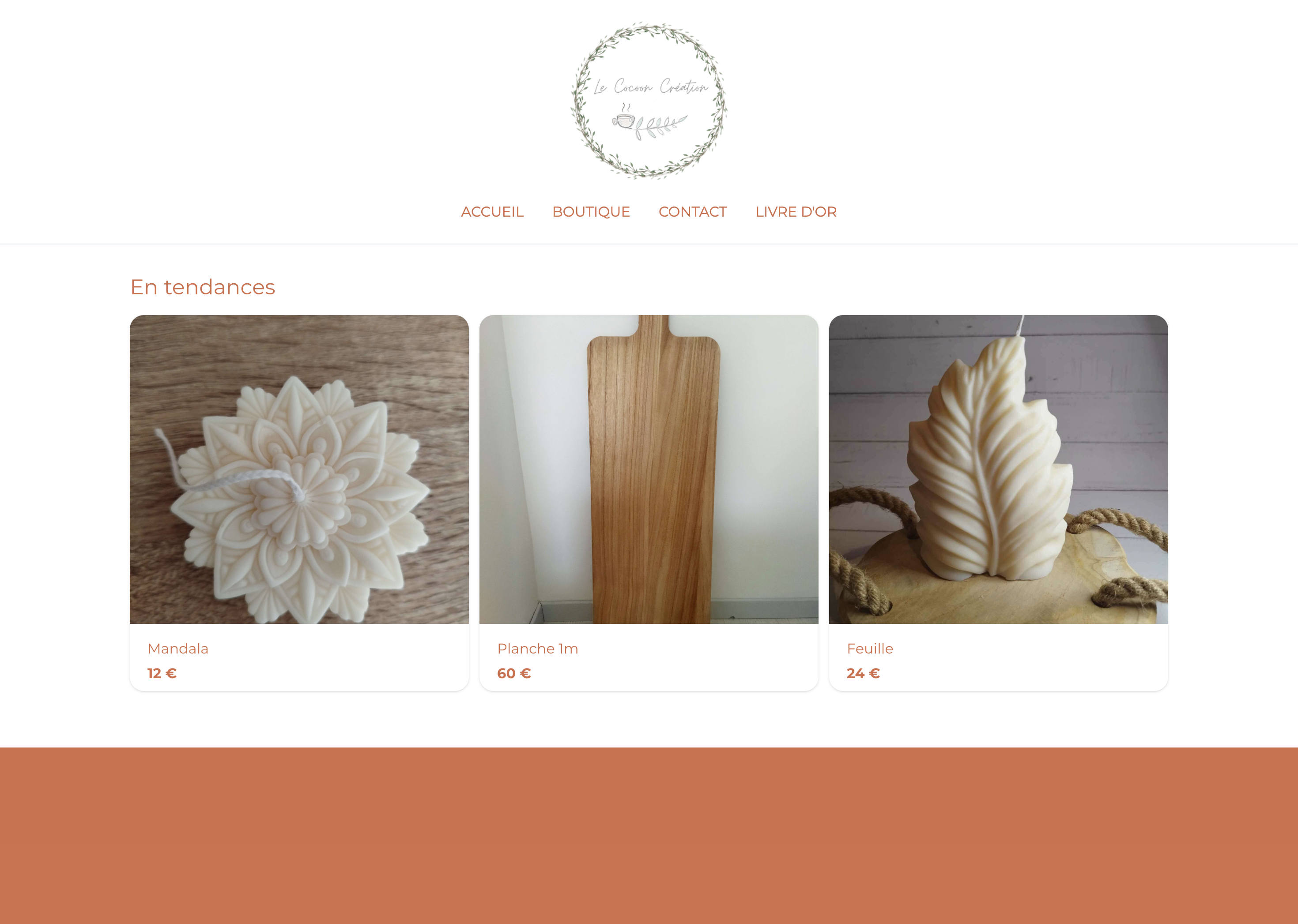 Le cocoon creation propose une panoplie de produits artisanaux. Des bougies, des fondants, de la pyrogravure ainsi que des réalisations sur mesure pour ces clients.